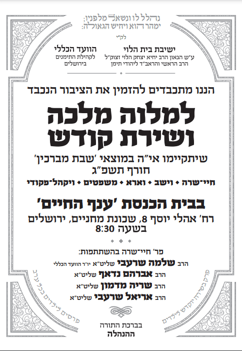 איחוד קהילות תימן: עונג שבת ומלווה מלכה בקהילות תימן בירושלים
