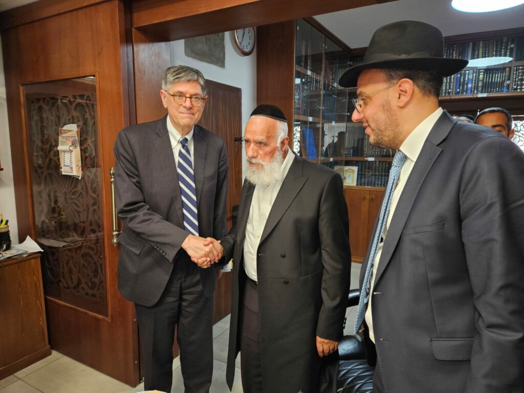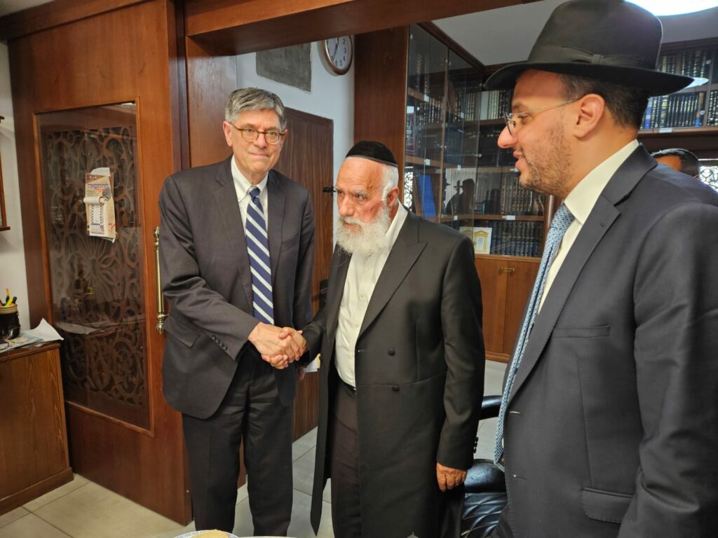 שגריר ארה״ב בישראל מר ג׳ק לו הגיע בשבוע האחרון לבליץ פגישות במעונם של גדולי ישראל, בין היתר ביקר במעונו של חבר מועצת חכמי התורה הגאון הגדול רבי שלמה מחפוד שליט"א, כשהוא מלווה בח"כ יוני משריקי, וסגני ראש העיר מש"ס. (דרך המלך)