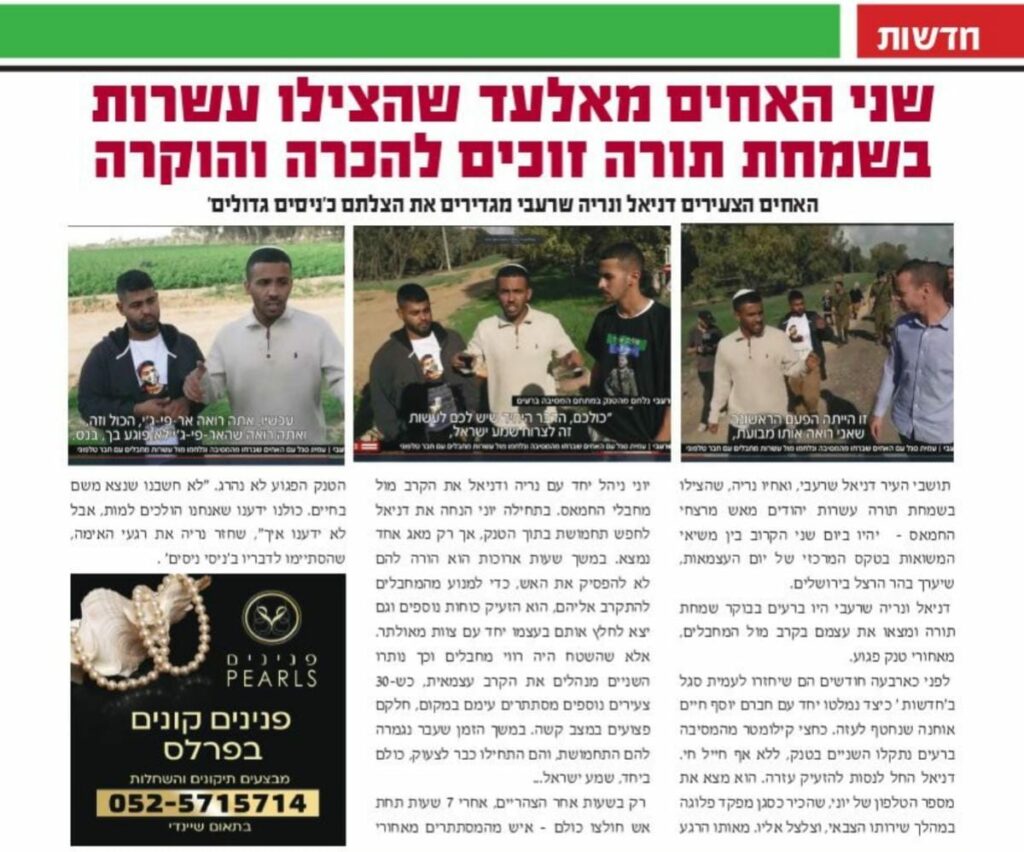 חברי הג'מעאה מצטרפים לברכות החמות לתושבי העיר אלעד האחים הצעירים דניאל ונריה שרעבי שניצלו מהתופת ביום שמחת תורה – מתוך 'קוראים אלעד':