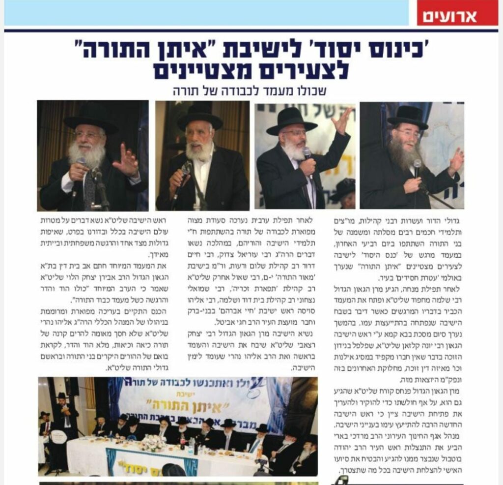 אפרופו אלעד: לפניכם תיעוד מתוך עיתון 'קוראים אלעד' לכנס יסוד לישיבת איתן התורה בעיר אלעד, בראשות הרה"ג רבי יונה קלזאן שליט"א. בהשתתפות גדולי רבני עדתינו, הגר"ש מחפוד, הגר"פ קורח, הגר"י רצאבי ועוד.
