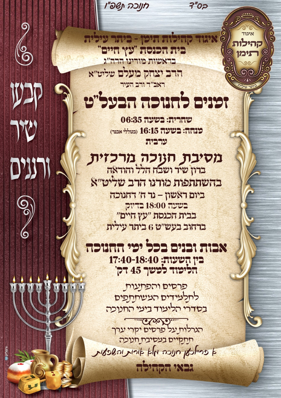 לוח המודעות > כל אירועי חנוכה של קהילות תימן ברחבי הארץ – אירועים, שיעורים, תוכניות לילדים, ועוד