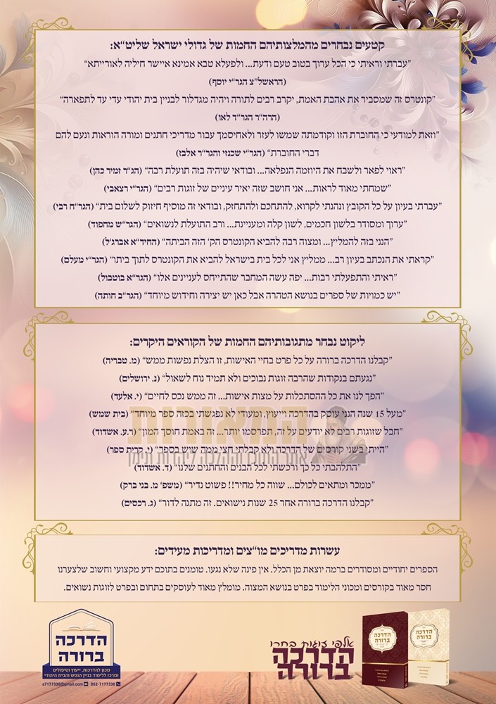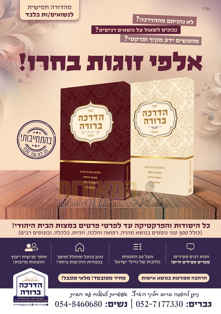 בשורה טובה: הופיע שוב הספר המבוקש 'הדרכה ברורה' (לבעל ולאשה) – בענייני הבית היהודי, כולל נושאי טהרה, רפואה, זוגיות, כלכלה ועוד, פרי עטו של הרה"ג רבי אלחנן כלאף שליט"א.