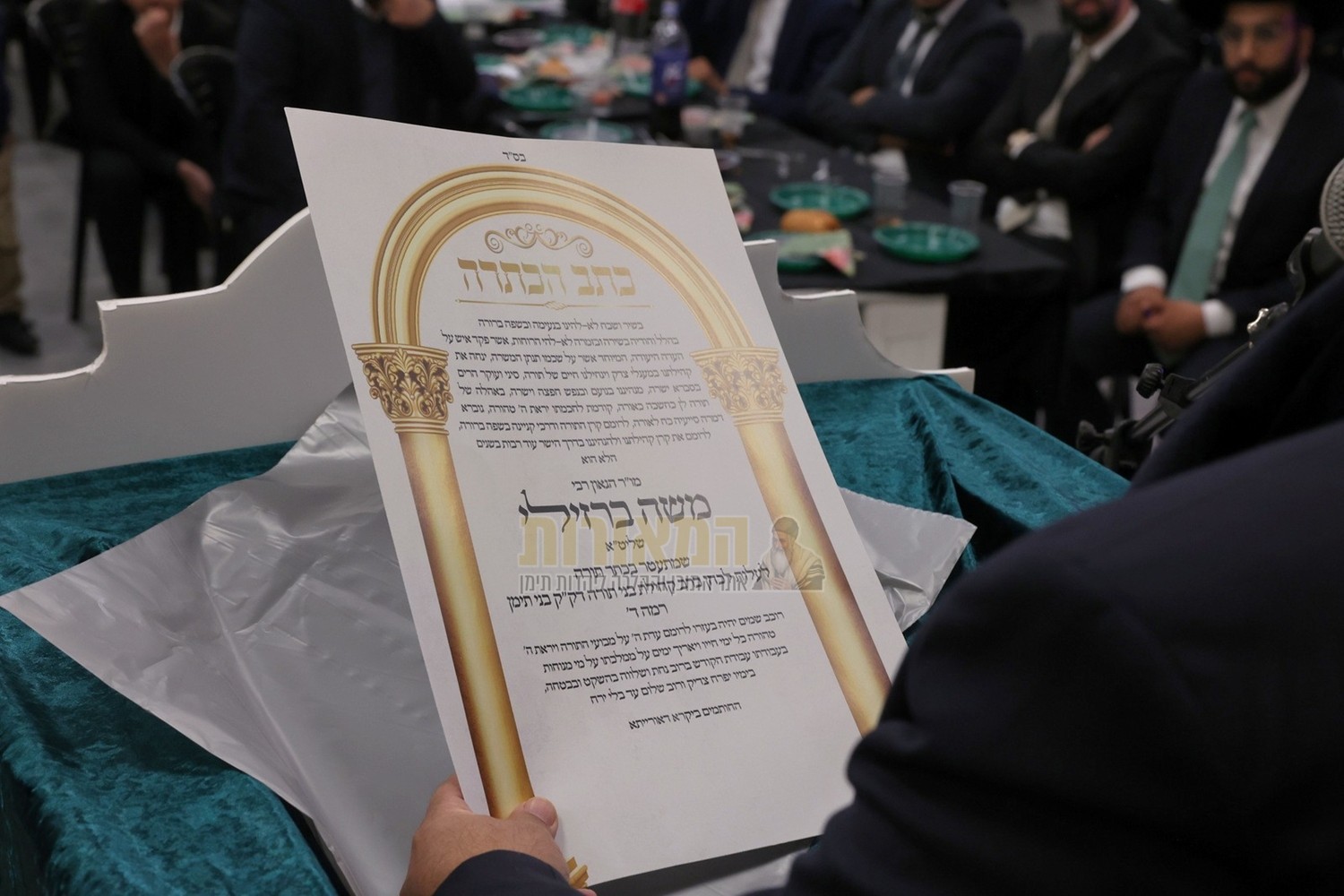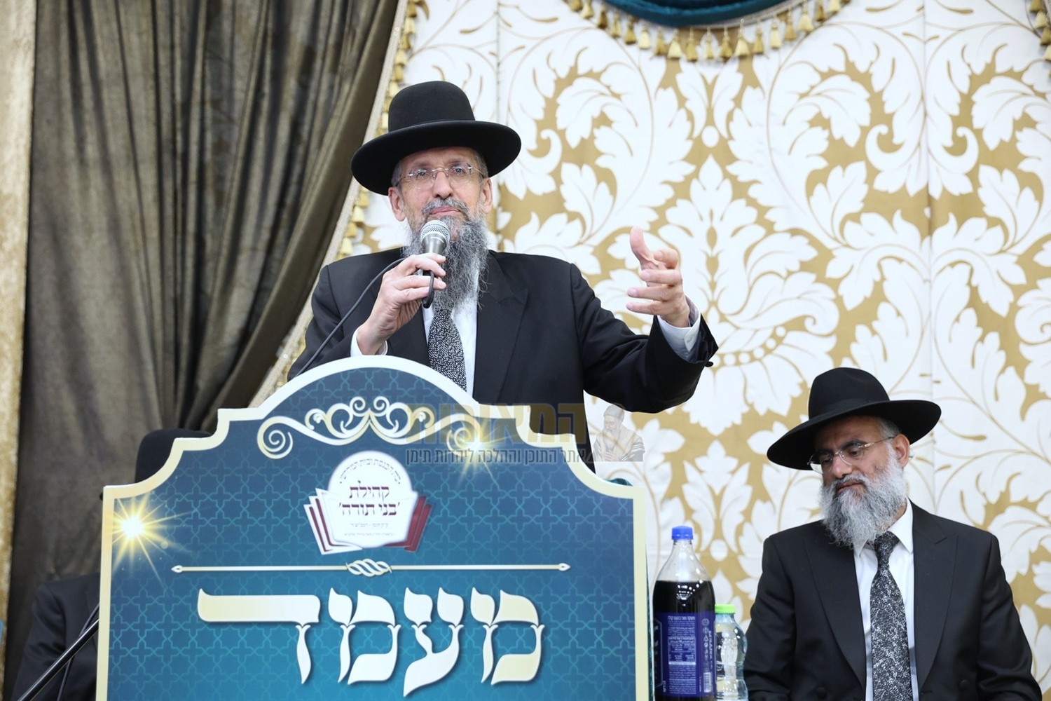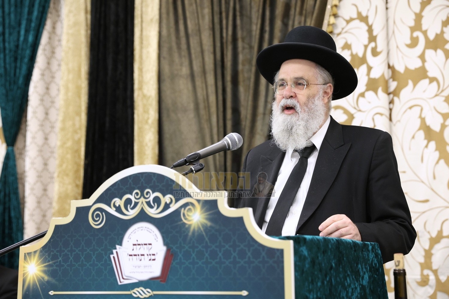 רב הקהילה החדש הגר"מ ברזילי שליט"א בירך "שהחיינו" בהתרגשות על טלית חדשה ונשא את המשא המרכזי, ולאחר מכן פרצו בני הקהילה בשירה וריקודים לכבודה של תורה.