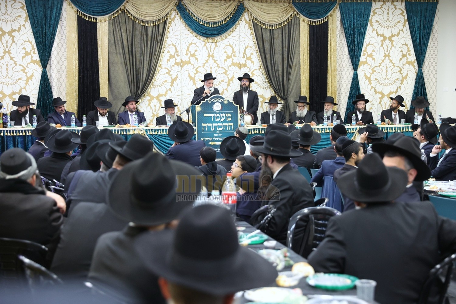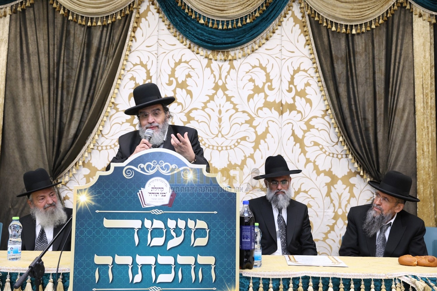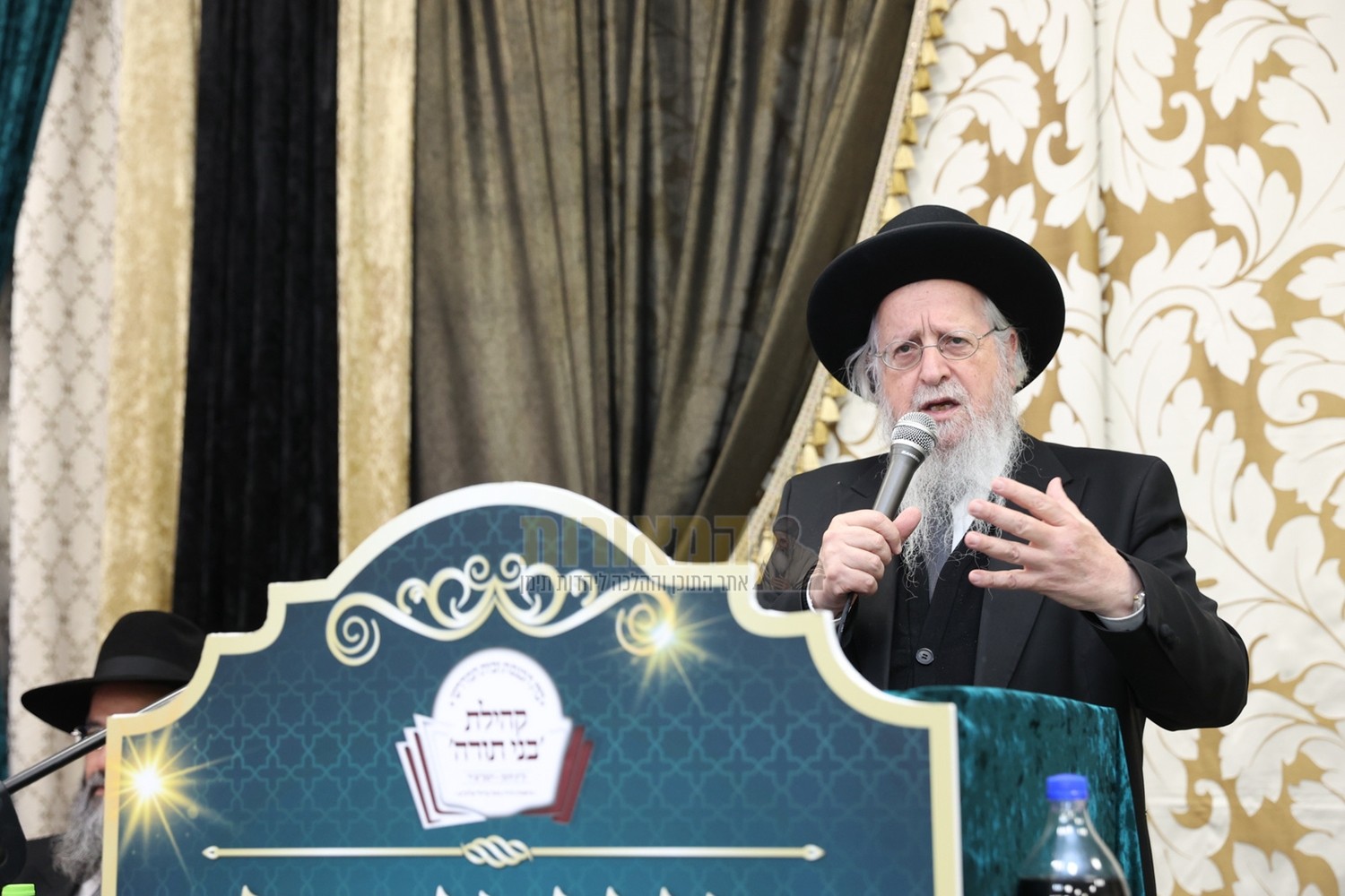 רב הקהילה החדש הגר"מ ברזילי שליט"א בירך "שהחיינו" בהתרגשות על טלית חדשה ונשא את המשא המרכזי, ולאחר מכן פרצו בני הקהילה בשירה וריקודים לכבודה של תורה.