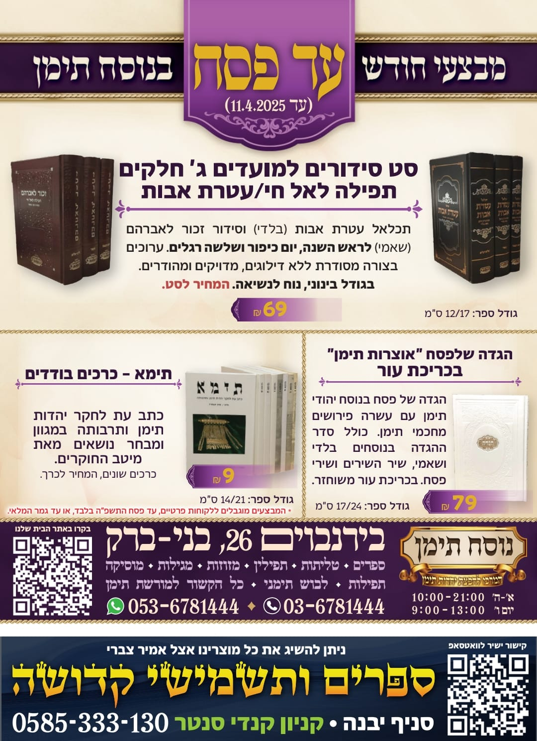 עד פסח הבעל"ט: מבצעים מיוחדים ב'נוסח תימן' >>>