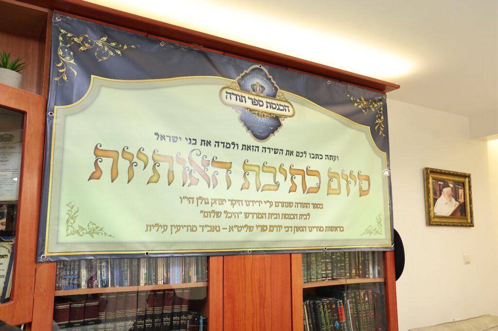 בקול צהלה ורינה נחגגה שמחת הכנסת ספר תורה המרוממת לבית המדרש 'היכל שלום' במודיעין עילית, אשר נתרם על ידי הנדיב הנכבד יצחק בן יוסף ושלי גולן הי"ו שהרימו נדבת קודש לד' ולתורתו, בהכנסת ספר תורה מהודר לבית המדרש המהווה כמגדלור לתורה ותפילה בראשות הגאון אב"ד שליט"א.