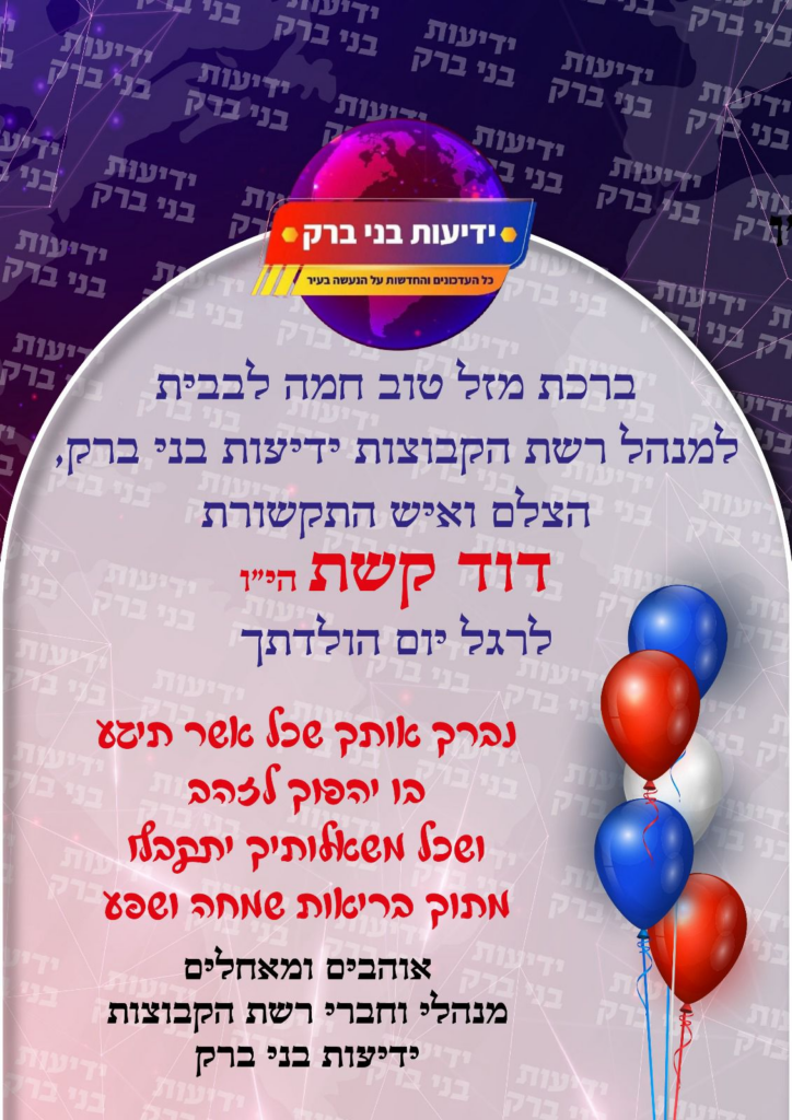 חברי הג'מאעה המקומית והארצית, מצטרפים לברכות ולאיחולים לאיש התקשורת ידידנו ר' דוד קשת היקר (בנו של נעים זמירות ישראל הרב שר שלום קשת הי"ו), לרגל יום הולדתו בשעטו"מ.