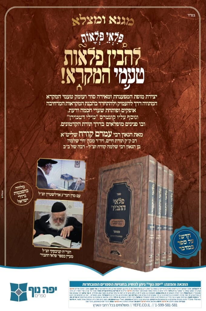בס"ד יצא לאור החלק הרביעי בסדרת הספרים הנפלאה 'פלאי התביר' – על חומש במדבר, פרי עטו של הגאון הגדול רבי עמרם קורח שליט"א – רב ק"ק 'תורת חיים' ביתר עילית ומרבני 'המאורות'.