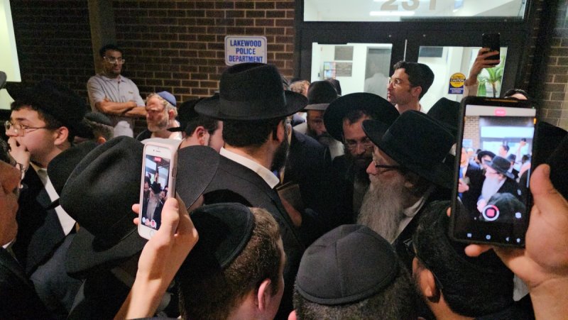 הציבור החרדי המתוסכל ממשטרת לייקווד התפרץ בזעם ציבורי במוצאי שבת, כאשר מפגינים רבים דרשו את שחרור האברך במיידי. ראשי ישיבת לייקווד הגיעו למקום למחאה שהיא לא שגרתית בלייקווד ודרשו את שחרור האברך.