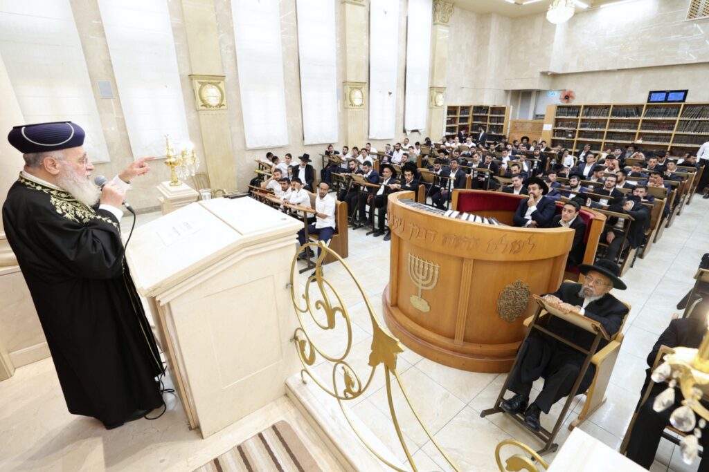 הראש"ל פתח בדברי חיזוק לבני הישיבה, ואמר להם כי עליהם להתחזק בלימוד התורה ולהיות גאים על כך שזכו לשבת וללמוד תורה, וכי עליהם לדעת שבזכות לימוד תורתם העולם עומד ולא להשגיח בכל הגזירות והסנקציות שמתכננים ראשי השלטון. לאחמ"כ נשא שיעור הלכתי במשך שעה ארוכה כשהאברכים ובני הישיבה נושאים ונותנים איתו בפלפול ובעומק כדרכה של תורה.