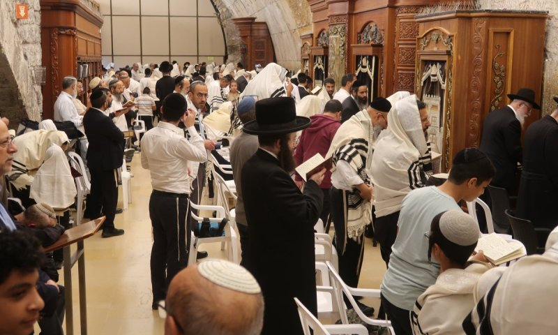 את האדמו"ר החדש מארה"ב – האדמו"ר מקאסוב שליט"א, ראינו מגיע לרחבת הכותל המערבי, שם הצטרף במשך שעה ארוכה לאמירת הסליחות כמנהג ק"ק תימן. (צילום משה ויסברג)