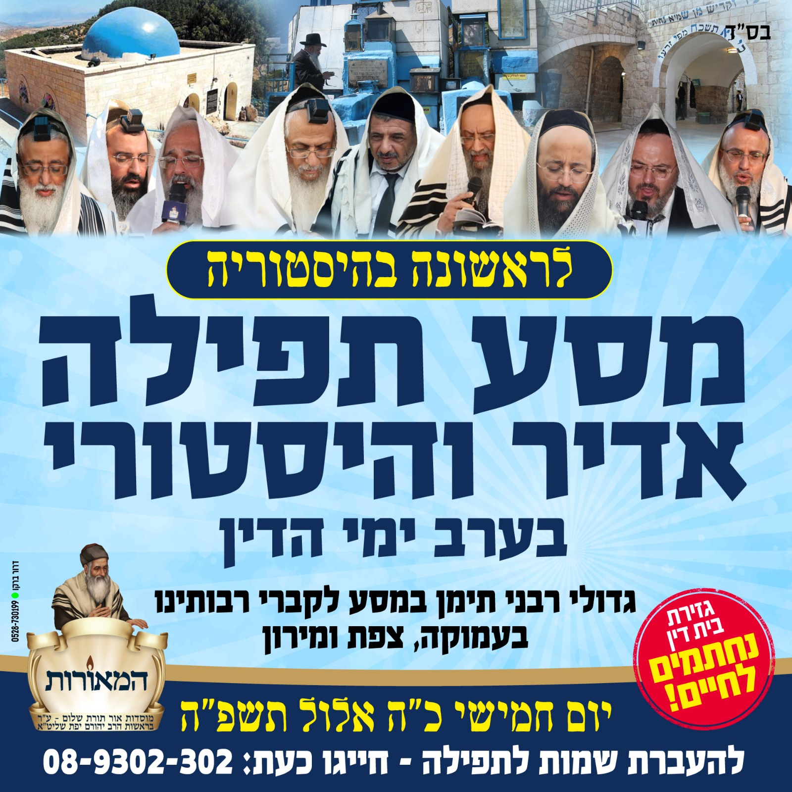 לקראת מסעם ההיסטורי של גדולי וצדיקי עדת תימן, לתפילה על הכלל והפרט בקברי רבותינו קדושי עליון, פונה הגאון הגדול רבי ברוך עוקשי שליט"א – רב קהילות בני התורה באלעד וראש כולל 'עץ חיים' בפ"ת, אל הציבור הקדוש, ליטול חלק במפעל התורה והחסד של מוסדות 'המאורות' ולקנות פרקליטים ומליצי יושר עבורכם ביום הדין, כאשר הוא בעצמו יתפלל ויעתיר יחד עם כלל הרבנים עבור כל שותף!