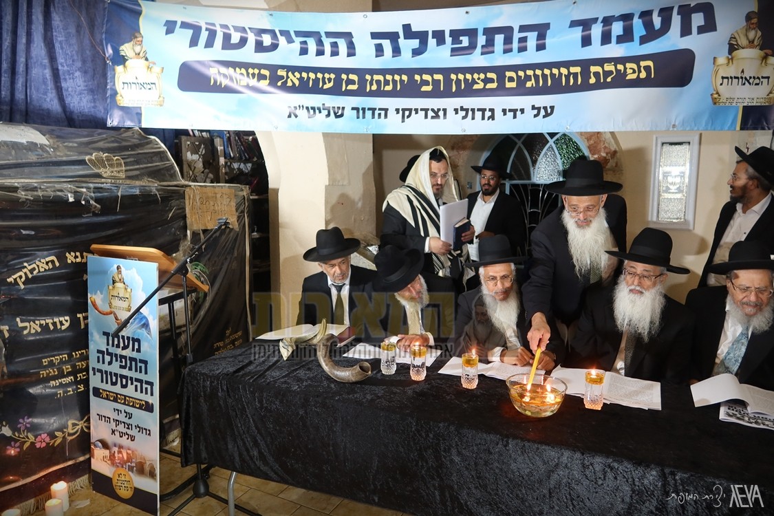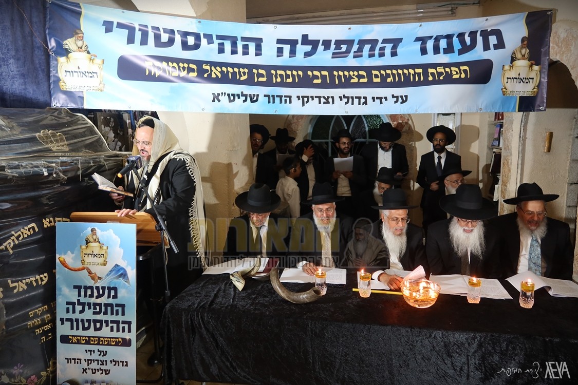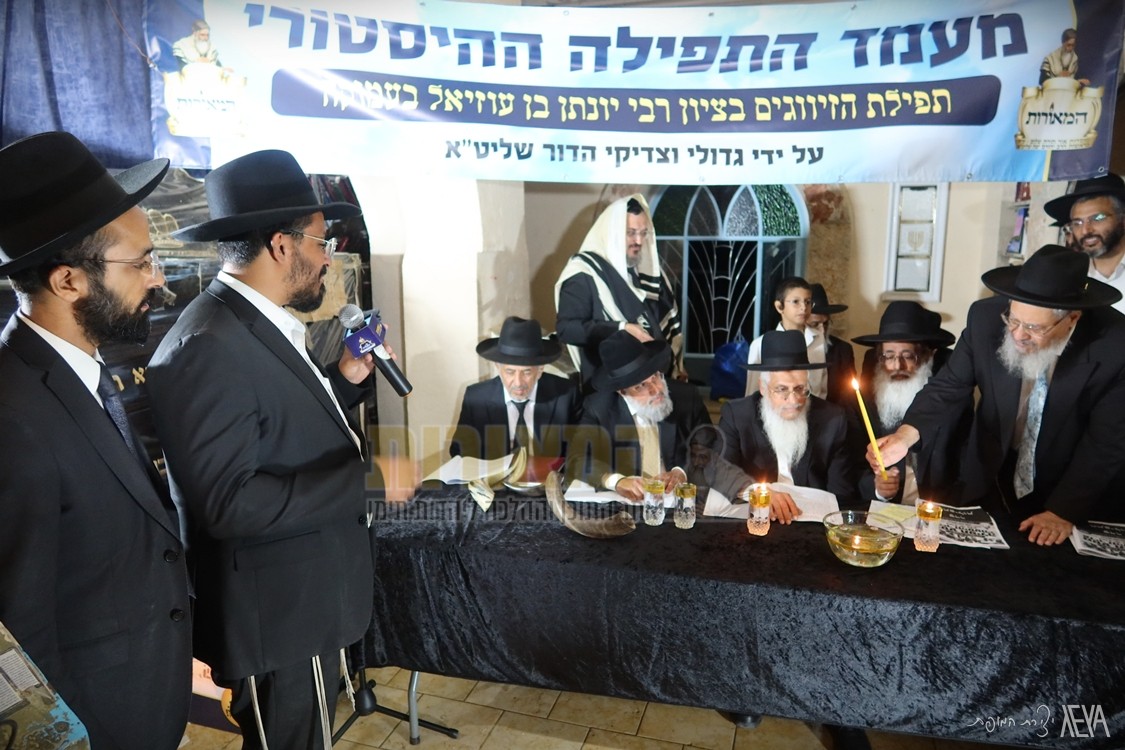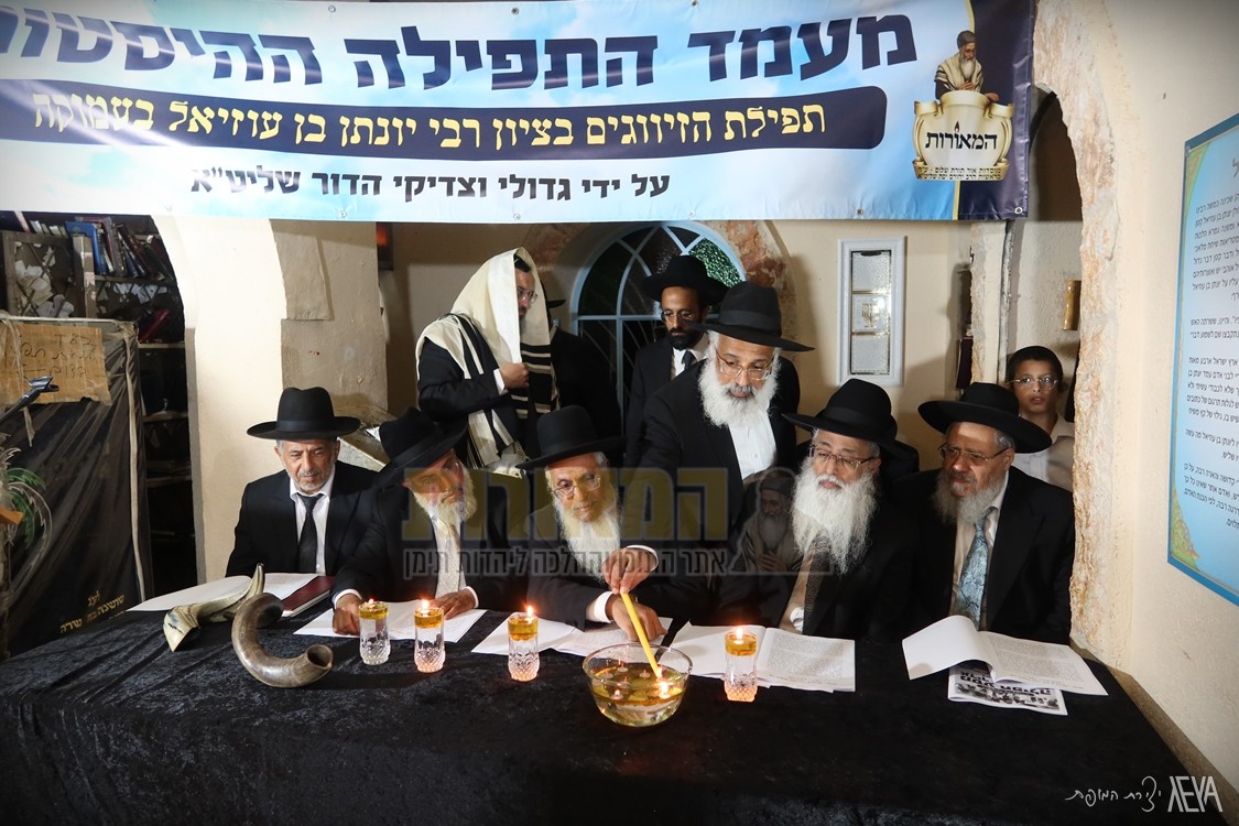 קודם חצות לילה יצאו הרבנים שליט"א ממקומות מושבותיהם ברחבי הארץ, והתכנסו בציונו של יונתן בן עוזיאל שבעמוקה. שעה קלה לאחר חצות, העלו הרבנים את האש בנרות השמן המיוחדים ובכך נפתח המעמד המרטיט של תפילת הזיווגים, כפי הסדר שנקבע בהתייעצות עם הגרמ"ש אדלשטיין שליט"א – ממשיך דרכו של אביו הגר"י זצ"ל: אמירת פרקי תהלים ברגש רב – כשלפני התיבה עובר הגר"ע צדוק, לאחר מכן ניגש הגר"ש בצלאלי לאמירת התפילה לזיווגים הגונים והרעיש עולמות בבכי תחנונים, ואחריו ערך מו"ר הגר"י יפת את ה"מי שבירך" עבור התומכים והמסייעים למוסדותנו, כשהוא מזכיר כל שם ושם בפרטות יחד עם שאר הרבנים.