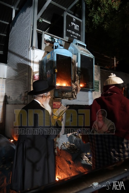 משם המשיכו הרבנים אל בית העלמין העתיק שבצפת, והעתירו בתפילה לה' על יד ציונו של האר"י הקדוש זי"ע – תחילה קראו פרקי תהלים ועוררו רחמי שמים בזעקת י"ג מדות, ואחרי כן ערך הגר"י סרי "מי שבירך" לרפואה וישועה.