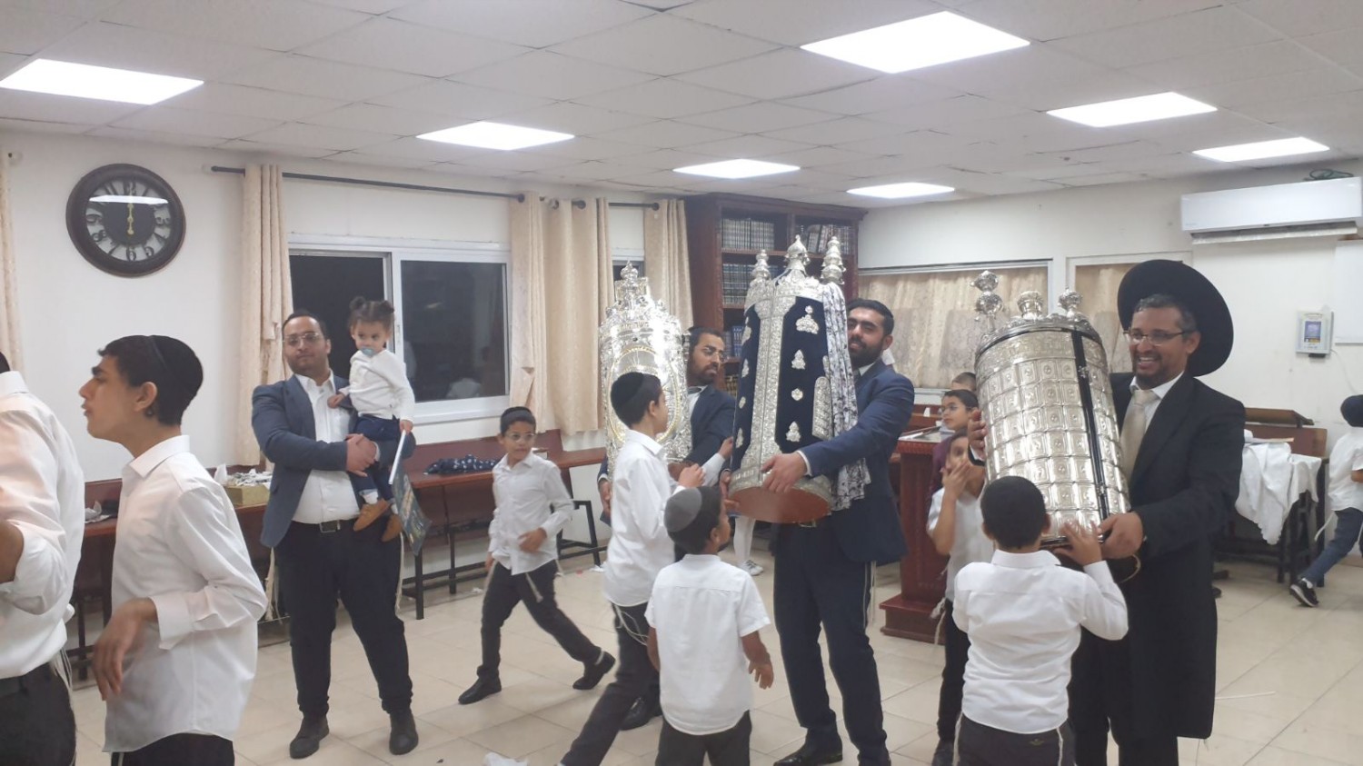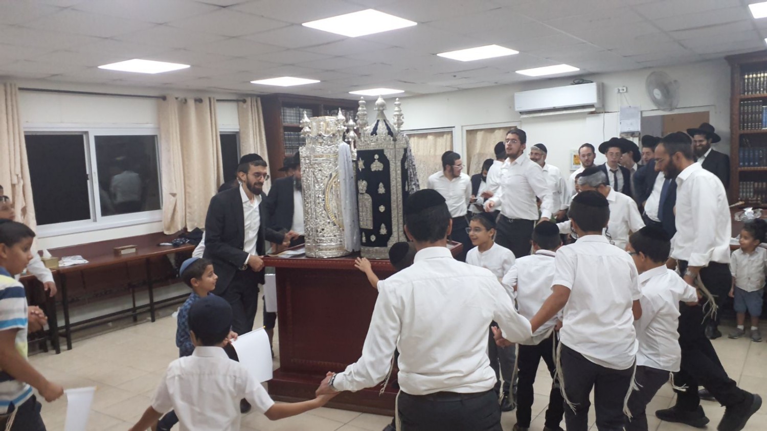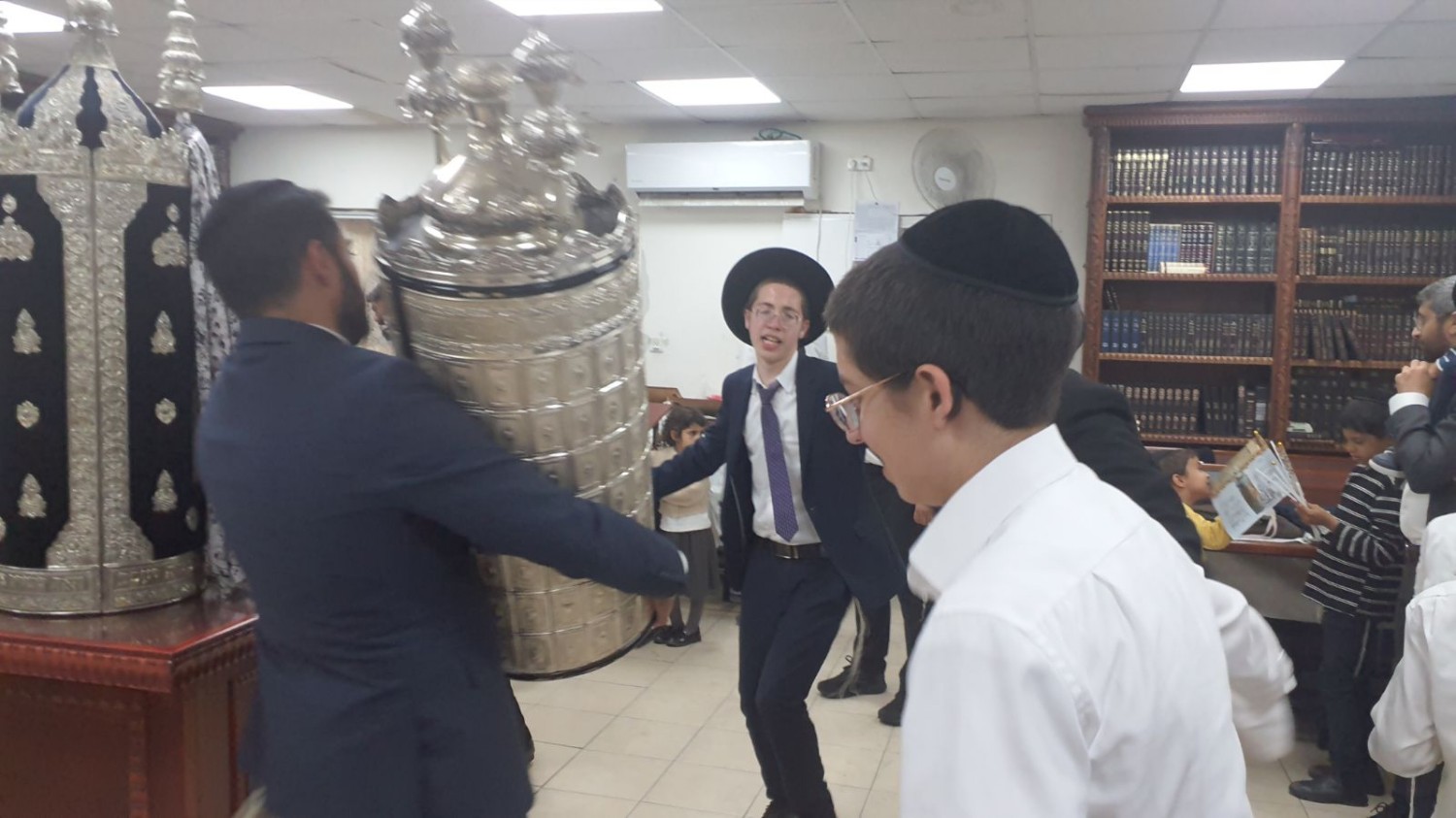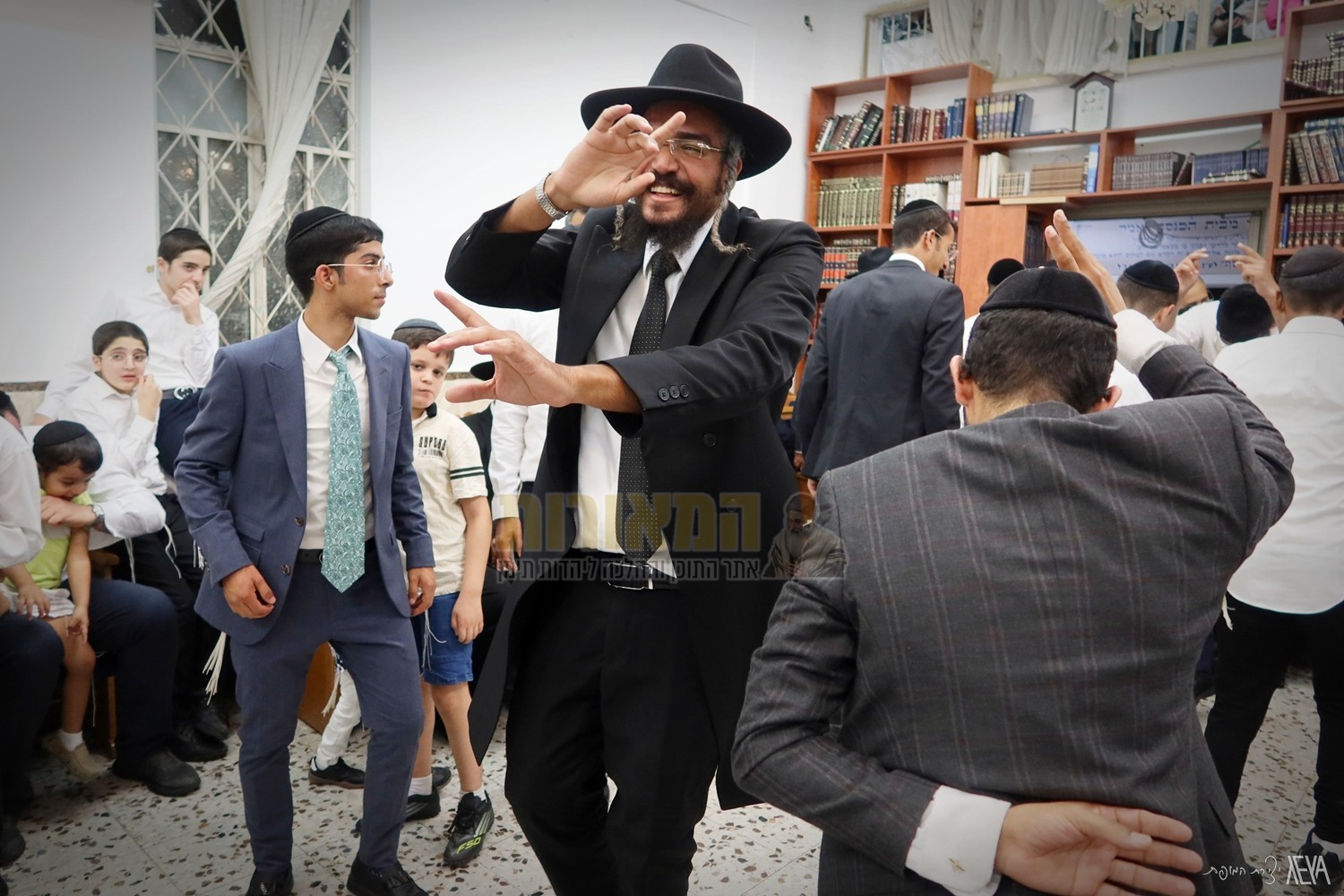 מגיד המישרים ומנחה האירועים הרה"ג רבי ישי יפת שליט"א – ראש מדרשיות 'המאורות', נצפה מפזז בהכנסת ספר תורה נדבת ידידו הר"ר שלומי זייבלד.