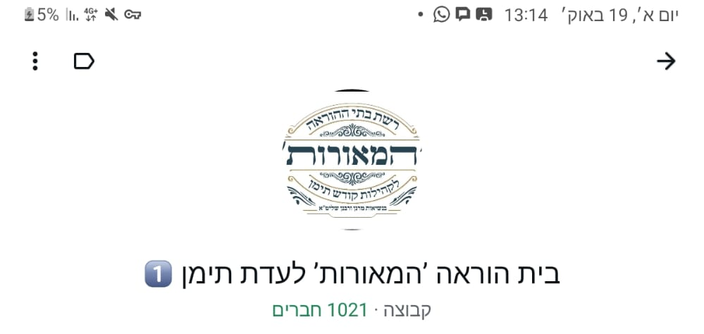 לא חלף הרבה זמן מאז שדיווחנו לכם על קבוצת בית ההוראה בוואטסאפ שמונה למעלה מ-1,000 חברים, וכעת כבר אפשר לדווח על קבוצה נוספת עם כ-500 חברים, כ"י. בכל קבוצה מקבלות תשובות על ידי כ-30 רבנים שזמינים לציבור נותנים מענה אונליין לשואלים בכל תחומי החיים. מרגש מאד לקבל תגובות רבות ונלהבות מאנשים שהתחזקו והתקרבו, הן בשמירת ההלכה והן בשמירת מסורת העדה.