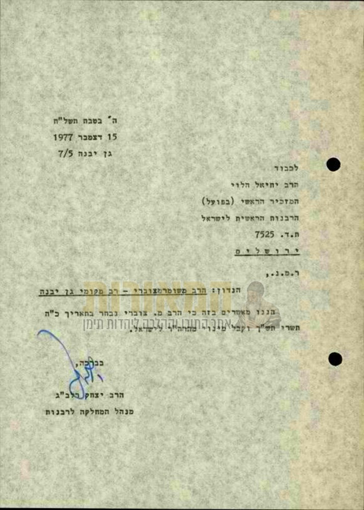 ביוזמת משרד הדתות נערכה בגן יבנה בדיקת תפילין ומזוזות. באחת החנויות במושבה גילה הרב מזוזות שאינן אלא נייר מצולם. מובן שננקטו כל הצעדים הדרושים ובעל החנות נתן הבטחה להיזהר מכך להבא.