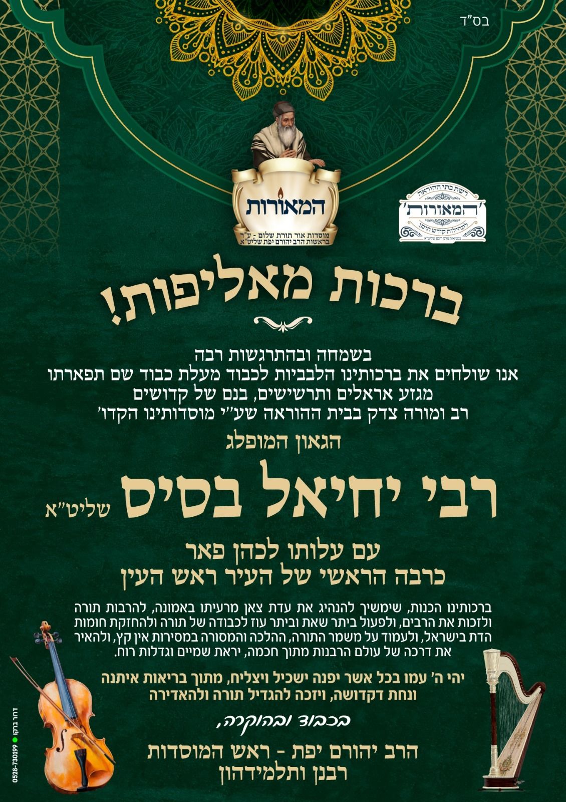 אתמול (א) התקיימו הבחירות לרבנות העיר ראש העין, ולאחר ספירת הקולות הוכרז כי הגאון הגדול רבי יחיאל בסיס שליט"א נבחר לתפקיד. בכך ימשיך הגר"י שליט"א את דרך אביו מרן הגאון רבינו עזריה בסיס זי"ע וישב תחתיו על כסאו, כצוואתו מחיים.