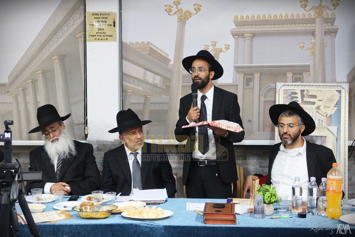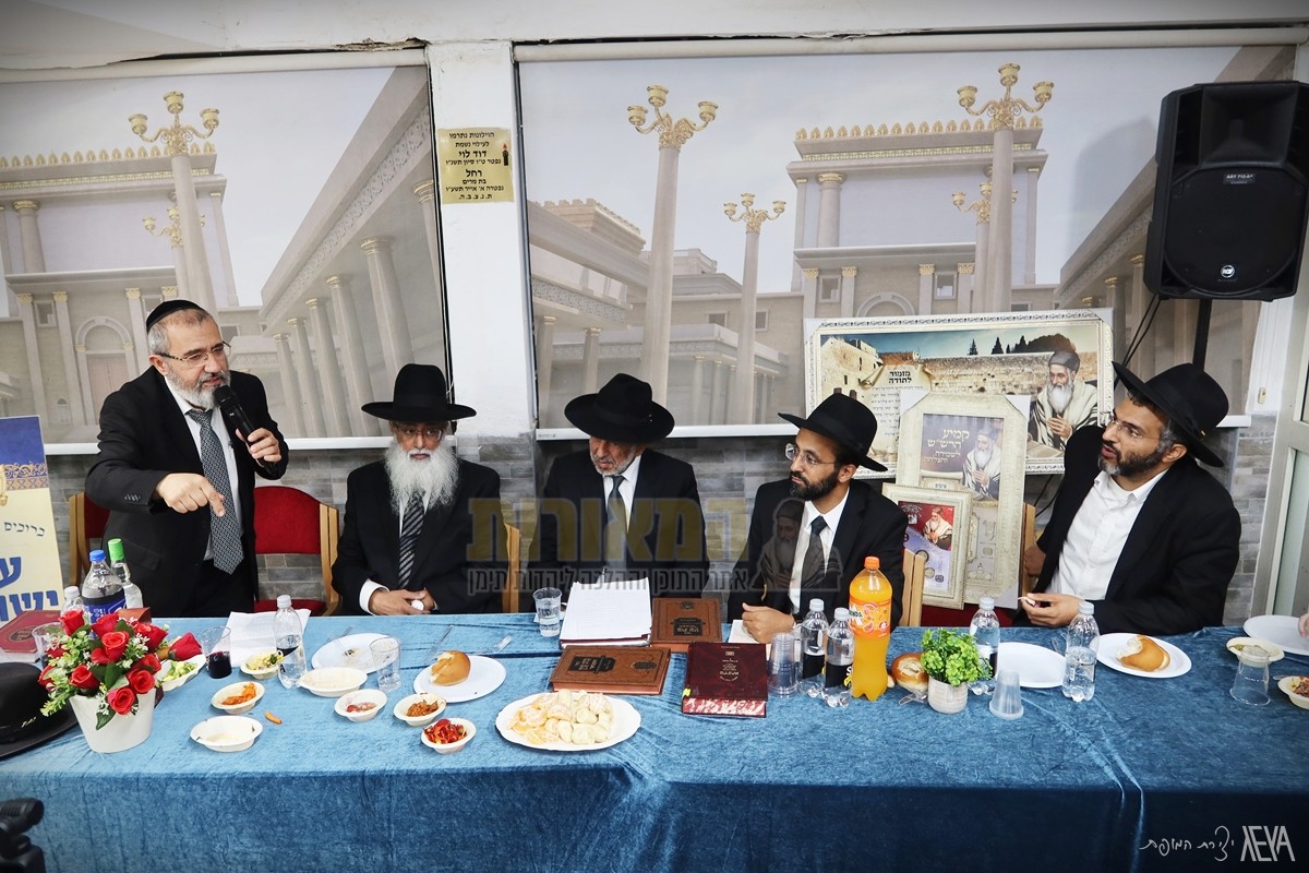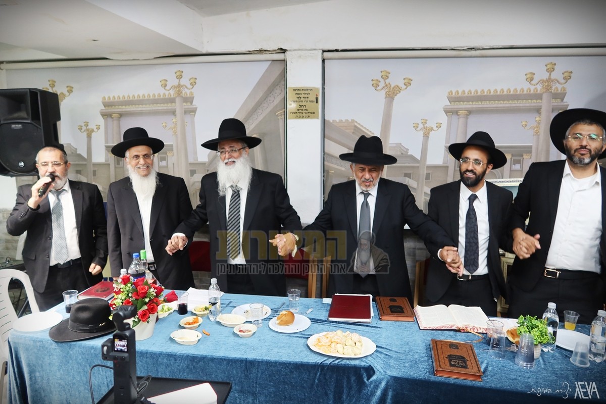 ערב של ישועות: משתתפי השיעורים וחברי כולל 'תפארת לוי יצחק' בכפר סבא, בראשותו של מגיד המישרים הרה"ג רבי ישי יפת שליט"א – ראש מדרשיית 'המאורות', חגגו אמש (שני) סיום מסכת "בכורות" בשילוב סעודת הילולא לכבוד הצדיקים – בעל ה'בת עין' הגה"ק רבי אברהם דב מאווריטש וה'בבא דו' הגה"ק רבי דוד אבוחצירא הי"ד, במעמד מרנן ורבנן: המקובל הצדיק רבינו שמעוני בצלאלי שליט"א, ראש המוסדות ונשיא בית ההוראה 'המאורות' הגאון רבי יהורם יפת שליט"א והגאון הגדול רבי יורם סרי שליט"א – אב"ד מודיעין עילית, וכמו כן מזכי הרבים: המרצה הבכיר הרב מרדכי לוי, מגיד המישרים רבי אריאל בצלאלי וראש המדרשייה הרב אביעד כפרי.