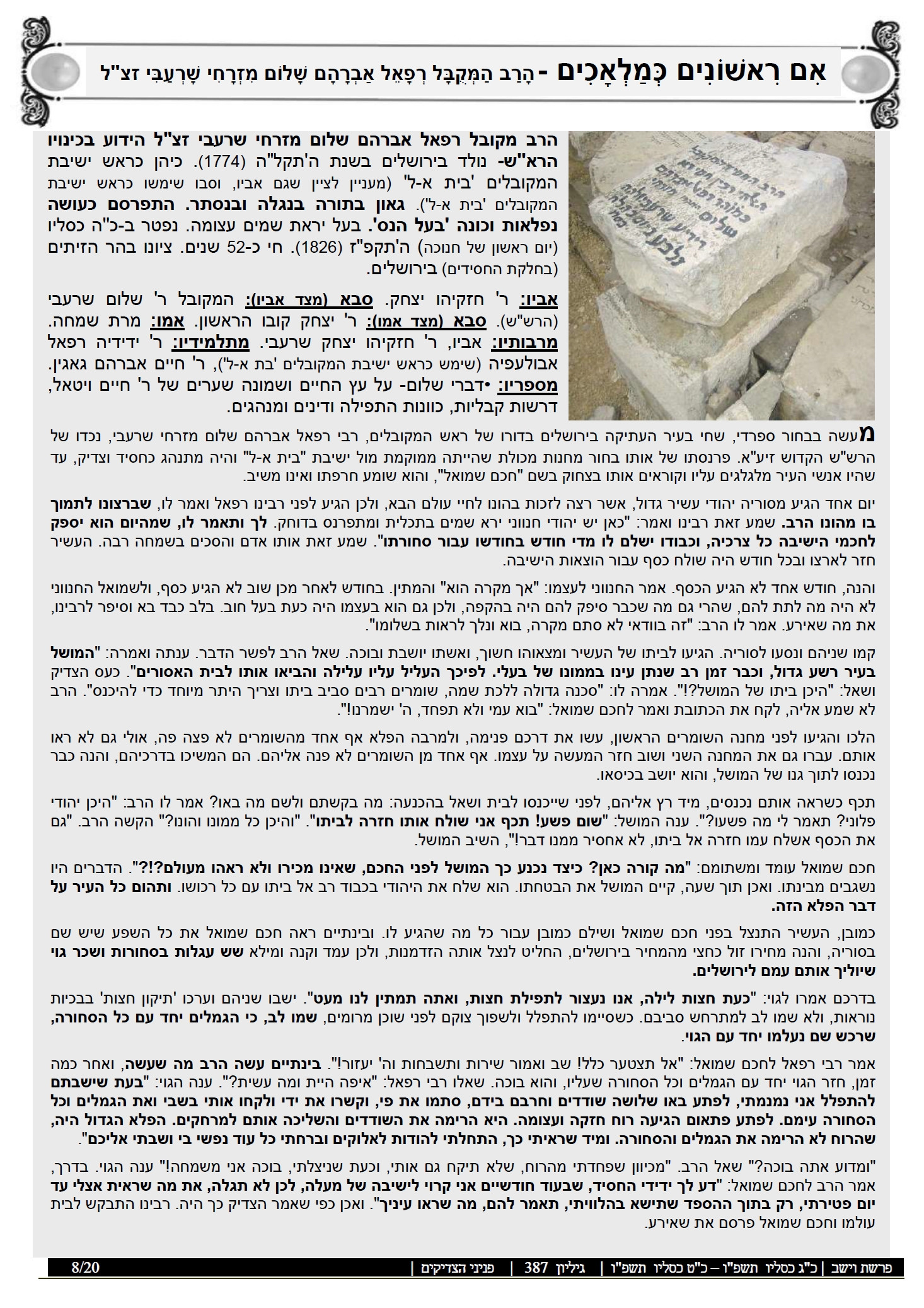 עוד מעלוני השבת שעברה: בגליון 'פניני הצדיקים' הוקדשה יריעה על הגה"ק רבי רפאל אברהם שלום מזרחי־שרעבי זי"ע, לרגל היא"צ.