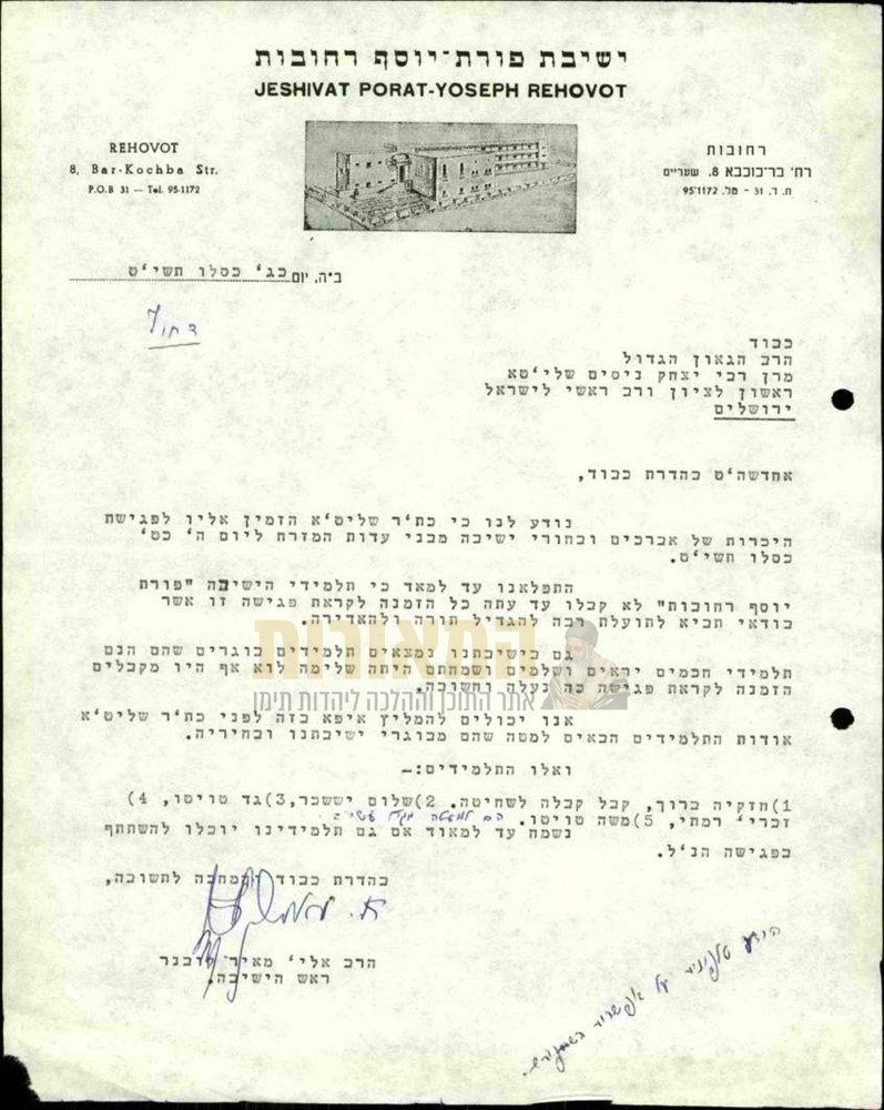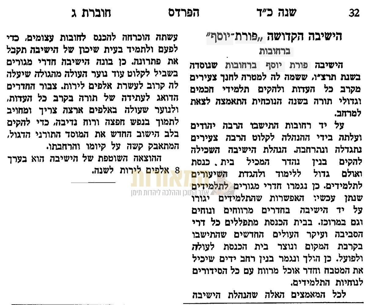 על ישיבת 'פורת יוסף' ברחובות | מתוך קובץ 'הפרדס' – כד