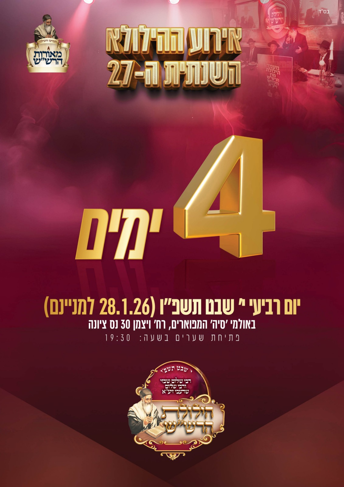 ההכנות להילולת הרש"ש המרכזית וערב ההצדעה השנתי למוסדות 'המאורות' בעיצומן, ואנשי ההפקה משתדלים לחדש ולהפתיע את הציבור בתוכניות מרגשות ומשמחות שיפתחו את הלבבות ויגביהו את המשתתפים טפחיים מעל הקרקע, לכבוד התורה וזיכוי הרבים.