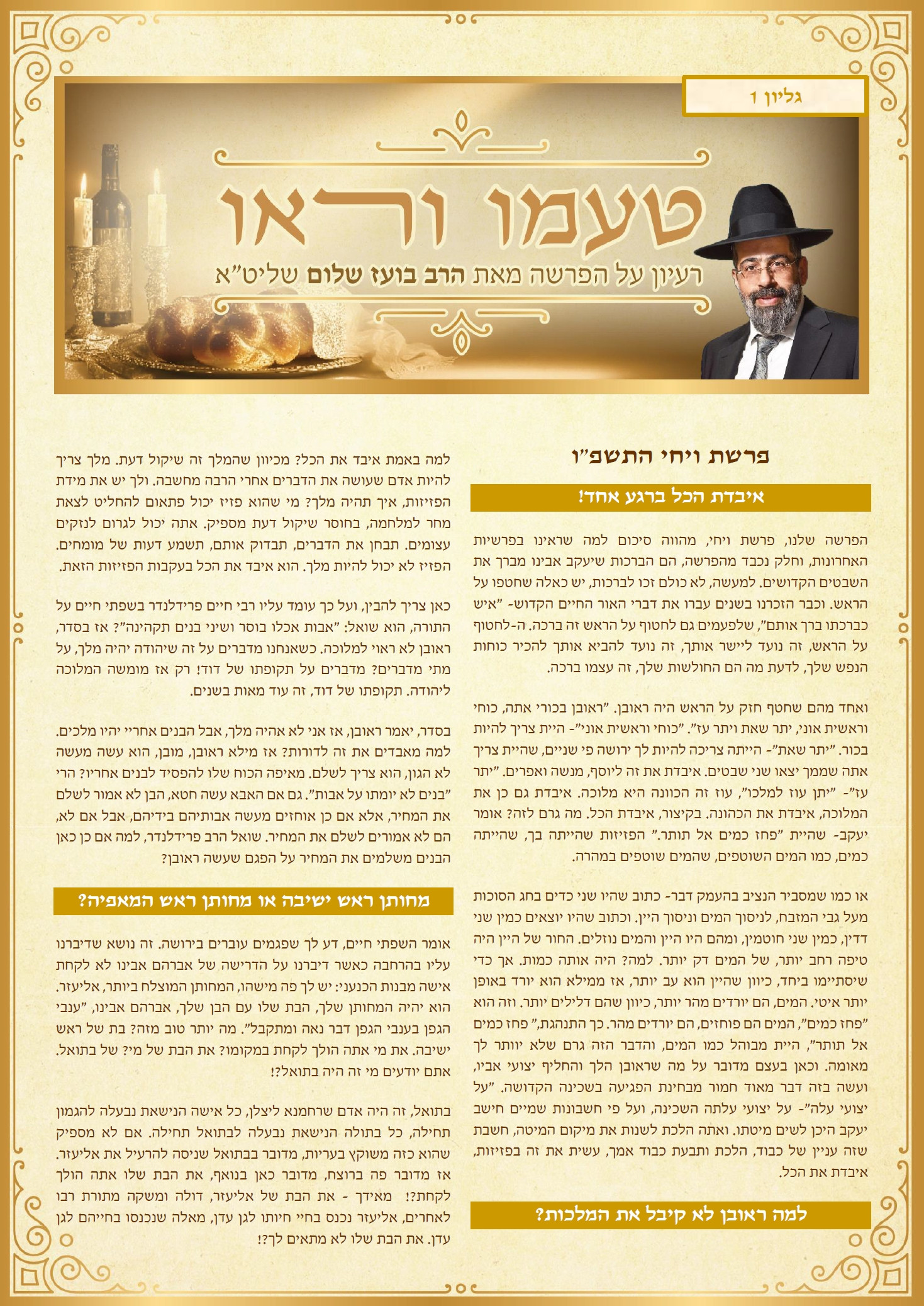 דף הבית » עלוני שבת » גיליון 'טעמו וראו' לפרשת תרומה תשפ"ו