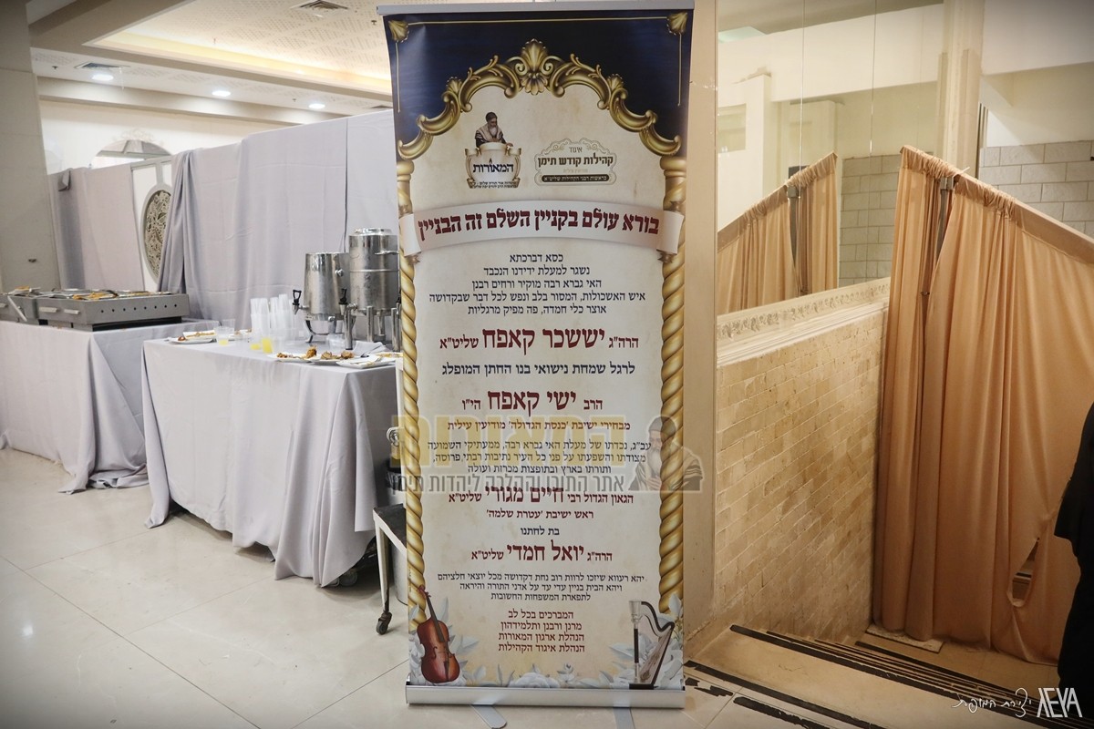 אמש (א) נערכה בבני ברק שמחת החתונה לבנו של הרה"ג רבי יששכר קאפח שליט"א – שו"ב במערכת הכשרות שע"י בד"ץ 'יורה דעה' ומפארי ק"ק תימן במודיעין עילית, החתן ישי נ"י – מבחירי ישיבת 'כנסת הגדולה' (ר' הלל) במודיעין עילית, עב"ג הכלה תחי' בת הגאון רבי יואל חמדי שליט"א – מרבני ישיבת 'קול יעקב' וחתן הגאון הגדול רבי חיים הכהן מגורי שליט"א – ראש ישיבת 'עטרת שלמה' בנתיבות.