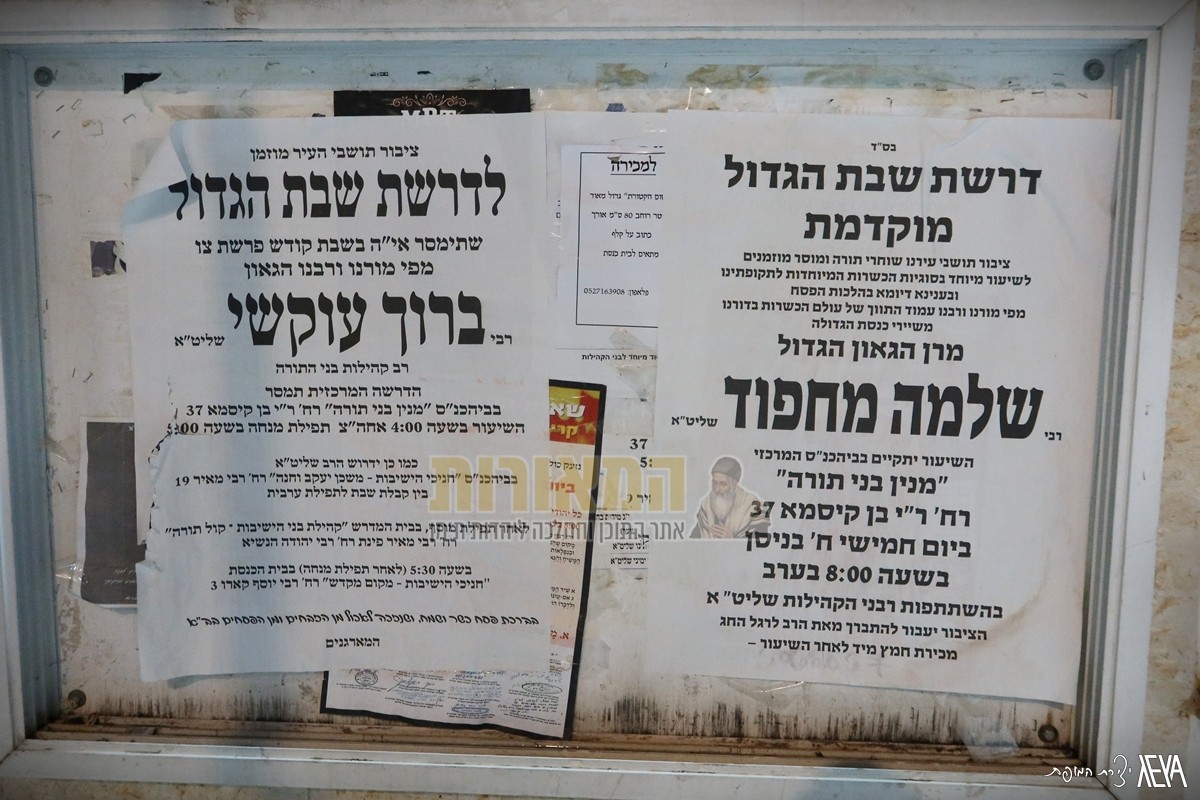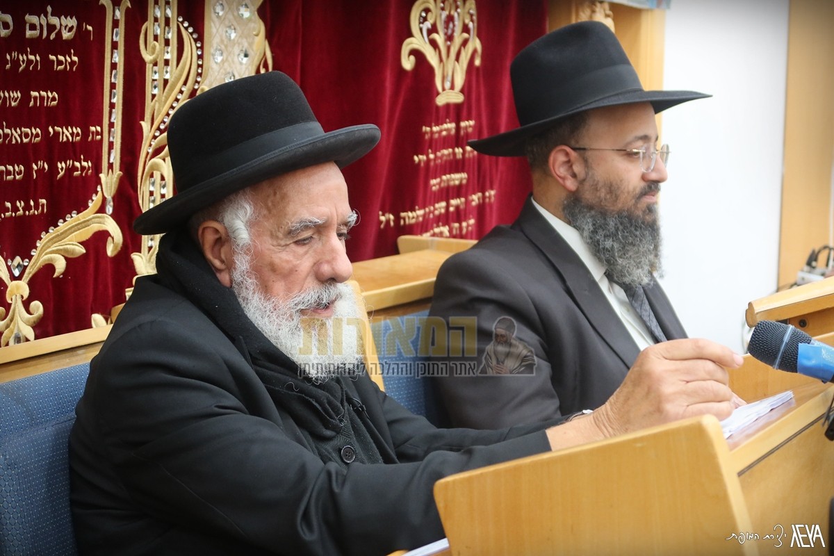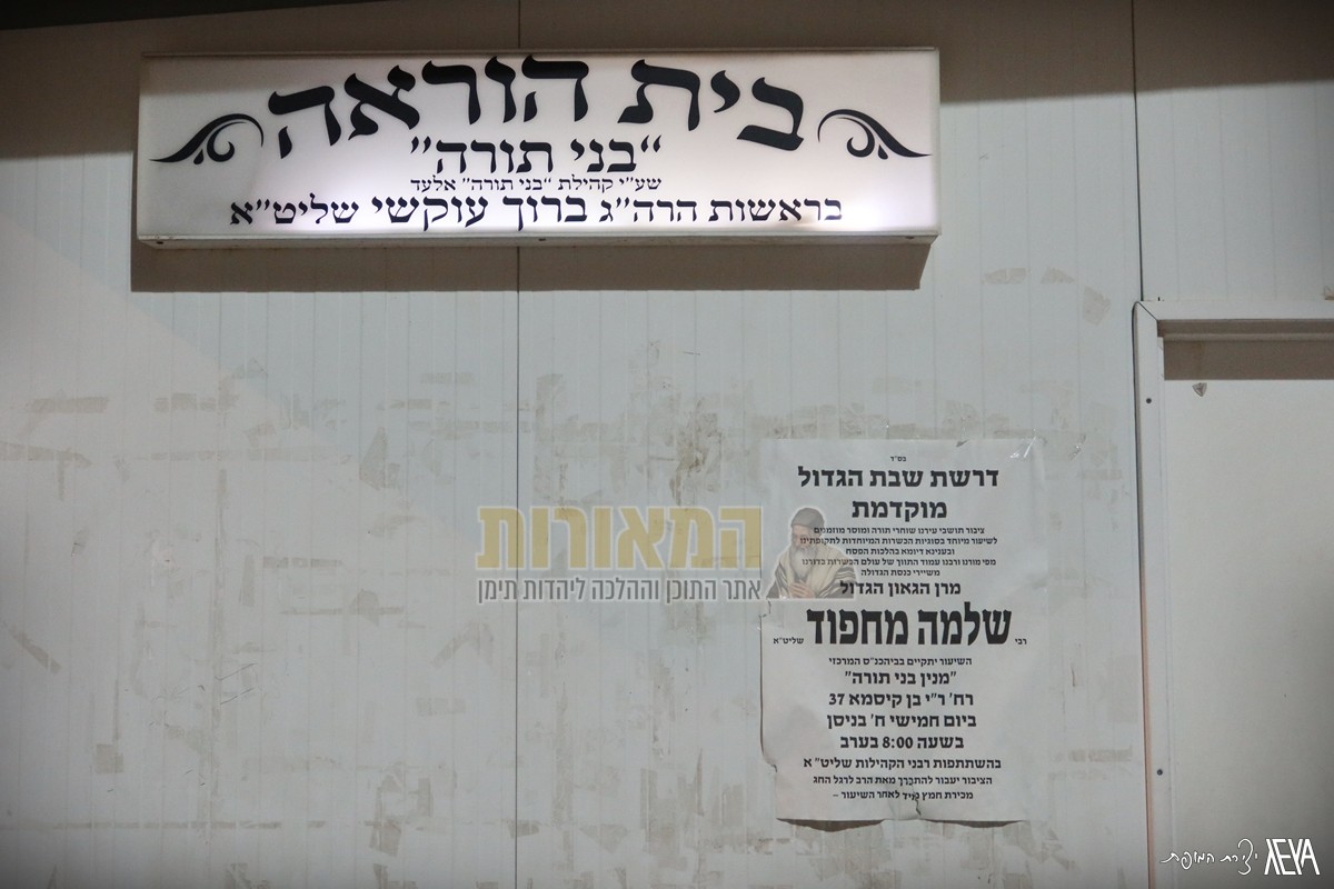 אלעד: כמדי שנה, הגיע חבר מועצת חכמי התורה וגאב"ד 'יורה דעה' מרן הגאון הגדול רבינו שלמה מחפוד שליט"א למסור את 'דרשת שבת הגדול' (המוקדמת) בהיכל בית המדרש 'מנין בני תורה – משכן נחמיה', בראשותו של הגאון הגדול רבי ברוך עוקשי שליט"א – רב מרכז אלעד וכלל קהילות בני התורה בעיר.
