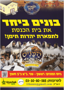 קמפיין גיוס המונים – ראשון ושני: בונים ביחד את קהילת "תפארת תימן" בעיר בית שמש • כל הפרטים